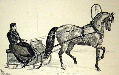 Esiste però in Russia un’altra razza di agili corsieri quasi sconosciuta in Francia, e sono i cavalli finlandesi. La loro statura non è più grande di quella del paziente animale dall’orecchie lunghe che noi tante volte trattiamo in ischerno. Gli asini non possono acclimatarsi in Russia, ma sono i cavalli finnici che ne fanno le veci nelle tenute e nei poderi, e dove se ne può apprezzare la sobrietà veramente singolare e l’infaticabile attività. Sono essi sovente che fanno servizio di posta. Il loro piede sottile e snello corre o piuttosto vola sulla neve senza quasi lasciarvi impronta, mentre li preserva dal freddo il folto pelo di cui si rivestono nell’inverno e spogliansi d’estate, a guisa di fata travestita che scuotesi di dosso i suoi stracci.