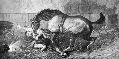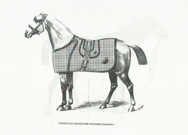 Si coprono pure i cavalli colla coperta quando durante il lavoro devono fare delle fermate. Nell’esercito si adopera piegata, per ammortizzare la pressione della sella.